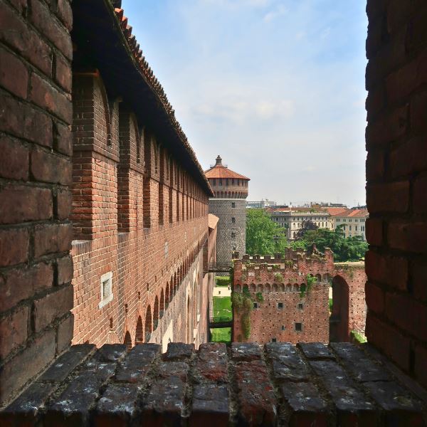 Dall’alto, i visitatori possono osservare Milano da una prospettiva inedita e scoprire la complessa struttura difensiva della fortezza.