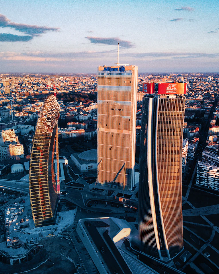 Qui si trovano le Tre Torri che hanno ridefinito questa parte della città e che rappresentano uno dei simboli più forti dello skyline Milano. La torre progettata da Zaha Hadid si distingue per le sue linee fluide e dinamiche, mentre quella firmata da Daniel Libeskind introduce una geometria inclinata e meno convenzionale. A completare il sistema c’è la torre che ospita Generali, che contribuisce a dare equilibrio all’insieme.